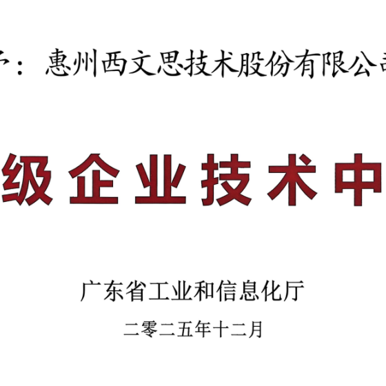 2025年12月,广东省工业和信息化厅公布《第24批省级企业技术中心认定名单》,惠州西文思技术股份有限公司凭借扎实的建设成效与持续的创新能力,被认定为“省级企业技术中心”。这不仅是对西文思深耕技术创新、筑牢研发根基的高度肯定,更是对公司创新体系建设、成果转化成效的官方背书。